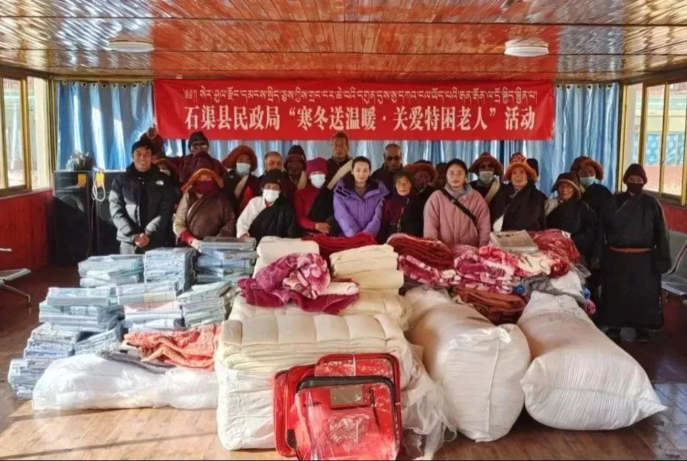 活动首先,为老人们送去了暖冬关爱物资,包括被芯、枕芯,毛毯;被套枕套、毯子等物资,本次关爱活动共计发放39个枕芯、39个毛毯、78个床上三件套,78个床垫,收到关爱物资的土登爷爷动情地说道:“感谢政府和各位领导的关心,你们不仅关心我的身体,连衣食住行都替我考虑到,还关心我平时的生活有没有遇到困难,遇到问题第一时间就帮我解决了,实在是太感谢了!"其次工作人员与老人们亲切交谈,了解老人最近身体情况,让他们保持乐观积极的生活态度,还分享了冬日保暖的小诀窍,并提醒老人冬季用电用火的安全事项。