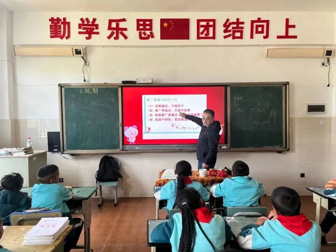 在第26个推普周来临之际,沈业银老师先后为石渠3所片区中心学校的近千名学生作了《推普助振兴·同音更同心》专题讲座。沈老师从“什么是普通话”、“为什么要学习普通话”、“怎么学习普通话”以及“普通话和方言、民族语言的关系”四个方面,深入浅出、生动形象地为同学们进行讲解。课堂上既有专业的发音知识,又穿插了大量的历史知识和趣味故事,还有方便实用的普通话学习技巧。同时,把“铸牢中华民族共同体意识”贯穿课堂始终,并用幽默风趣的语言开展教学互动,深深地吸引了学生。