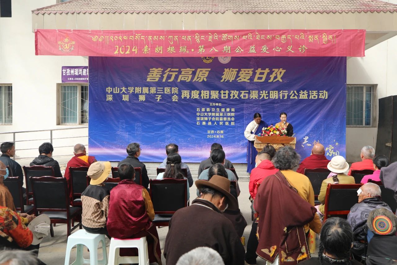 活动期间,来自中山大学附属第三医院的眼科专家团队与当地医疗人员携手合作,为石渠县及周边地区的300余名患者进行了筛查,其中53名患者接受了白内障手术义诊。此外,其他眼疾患者也得到了相应的治疗,许多患者得以重见光明。在仪式上,各位领导和来宾纷纷致辞,对活动的成功举办表示祝贺,并对参与的医疗团队和志愿者表示感谢。深圳狮子会防盲委员会执行主席郑献平表示,这是他第九次来到藏区参与支持白内障手术义诊,他强调了持续关注和帮助高原地区眼疾患者的重要性。