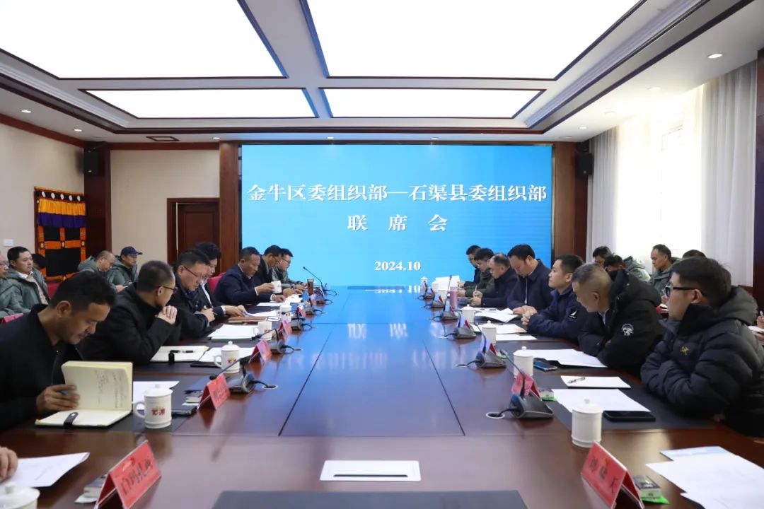 为进一步加强共话金石一家亲、共叙金石帮扶情、共谋金石新征程。近日,成都市金牛区委常委、组织部部长罗胤一行工作组赴我县开展对口帮扶工作,看望慰问对口帮扶工作队员,并于10月17日召开金牛区委组织部—石渠县委组织部联席会。县委副书记嘎绒多吉,县委常委、副县长刘健东出席会议,会议由县委常委、组织部长仁孜降措主持。
