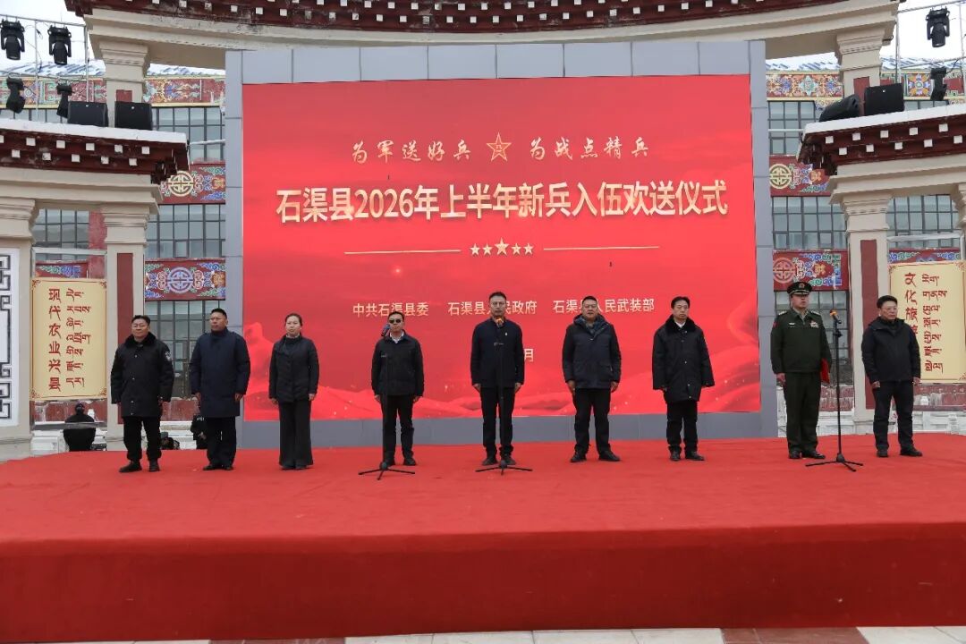 为热烈欢送优秀青年光荣入伍、投身强军事业,3月13日,石渠县隆重举行2026年上半年新兵入伍欢送会,县委副书记、县长赵峰,县人大主任朱小林,“四大家”在家县级领导出席活动,县级机关各部门代表、新兵家属、干部群众代表参加活动,共同为6名即将奔赴军营的热血男儿壮行,活动由人武部上校部长黄林主持。