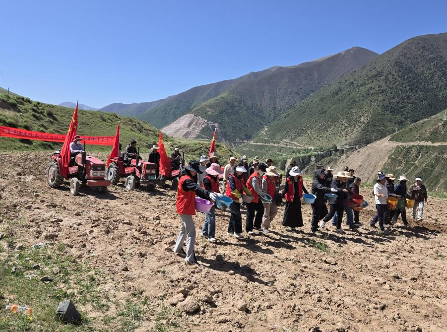 在格绒村的2亩实验地里,村民用传统撒播方式,将浸泡在水中的豌豆种子,均匀在地里来回播撒,把希望种子深深埋进肥沃的土中,村民脸上洋溢的笑容,犹如日后丰收的喜庆画卷一般。