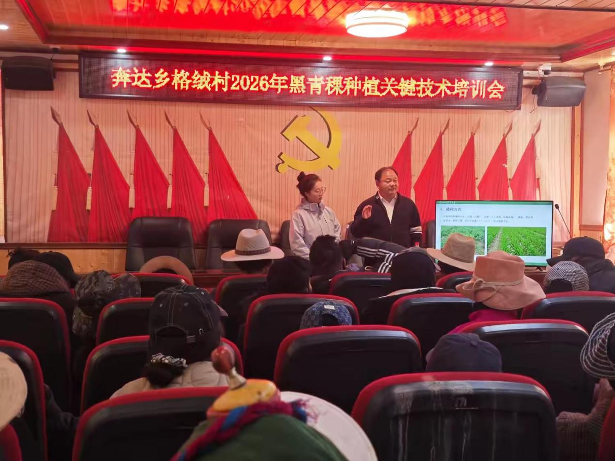 春风送暖,高原春耕正忙。近日,在中国石油川庆钻探工程有限公司全程帮扶支持下,石渠县奔达乡格绒村2026年黑青稞种植关键技术培训暨春耕服务活动顺利开展。四川农业大学农学院冯宗云教授团队、成都翔云大地农业科技有限责任公司专家技术团联袂助阵,以“央企出资、高校科研、企业服务、地方落地”四方联动模式,为高海拔春耕注入强劲科技动能。